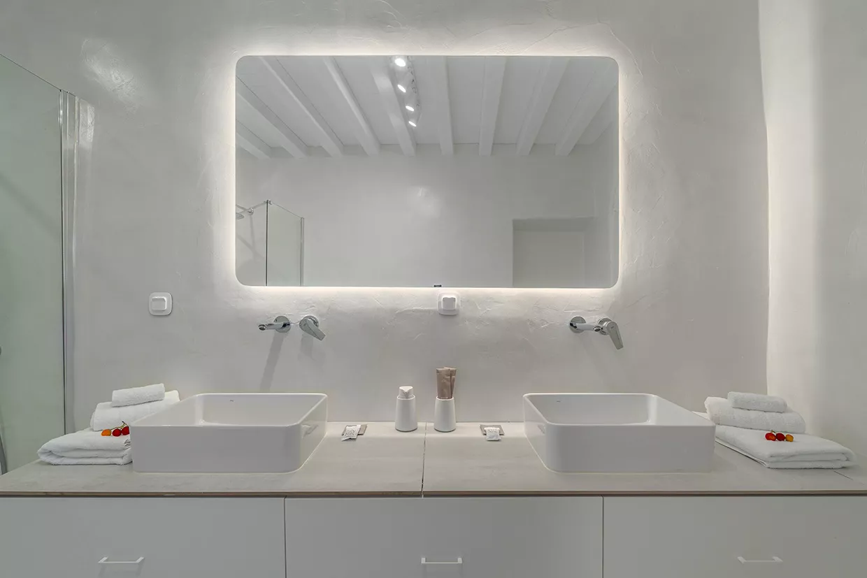 Inspired by the philosophy of mindful living and refined simplicity, Epicure Suite blends modern comforts with traditional Greek elements. Its interior reflects thoughtful design, contemporary artistic touches, and carefully selected natural materials that enhance a sense of calm and indulgence. From our premium amenities package to the feather pillows and custom-made full latex mattresses exclusive to Rabagas, every detail has been carefully curated to ensure superior comfort and relaxation.