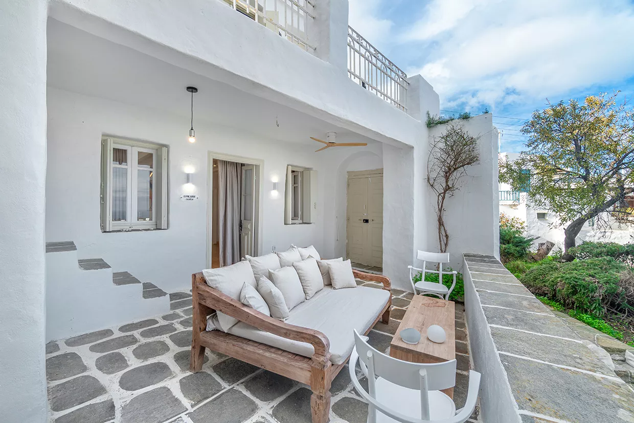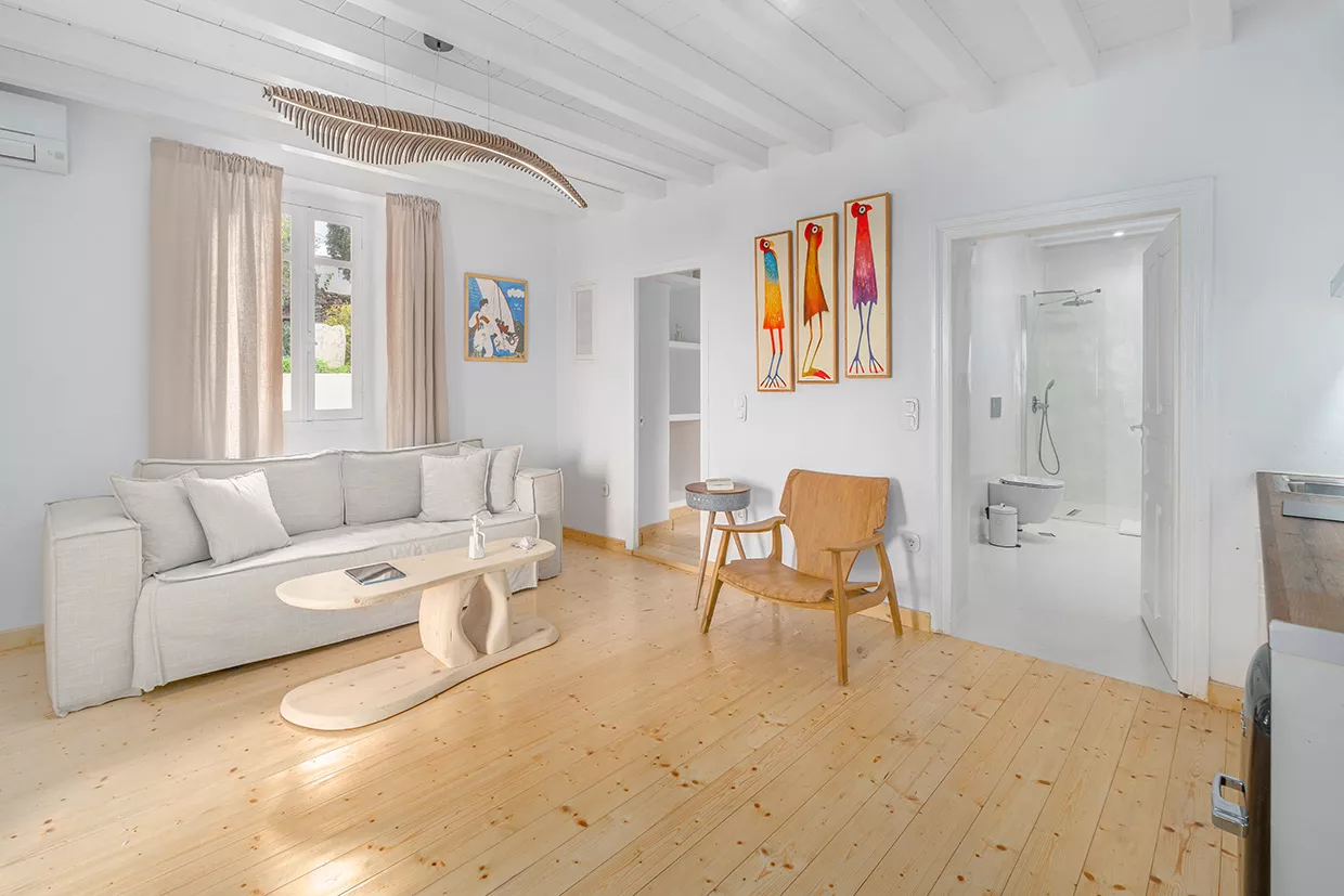 Epicure Suite is located on the ground floor of a beautifully restored traditional Cycladic residence dating back to before 1910, within our Cycladic settlement. Offering direct access and a serene outdoor sitting area, the suite invites guests to unwind while embracing the authentic atmosphere of Sifnos and the timeless charm of its surroundings.